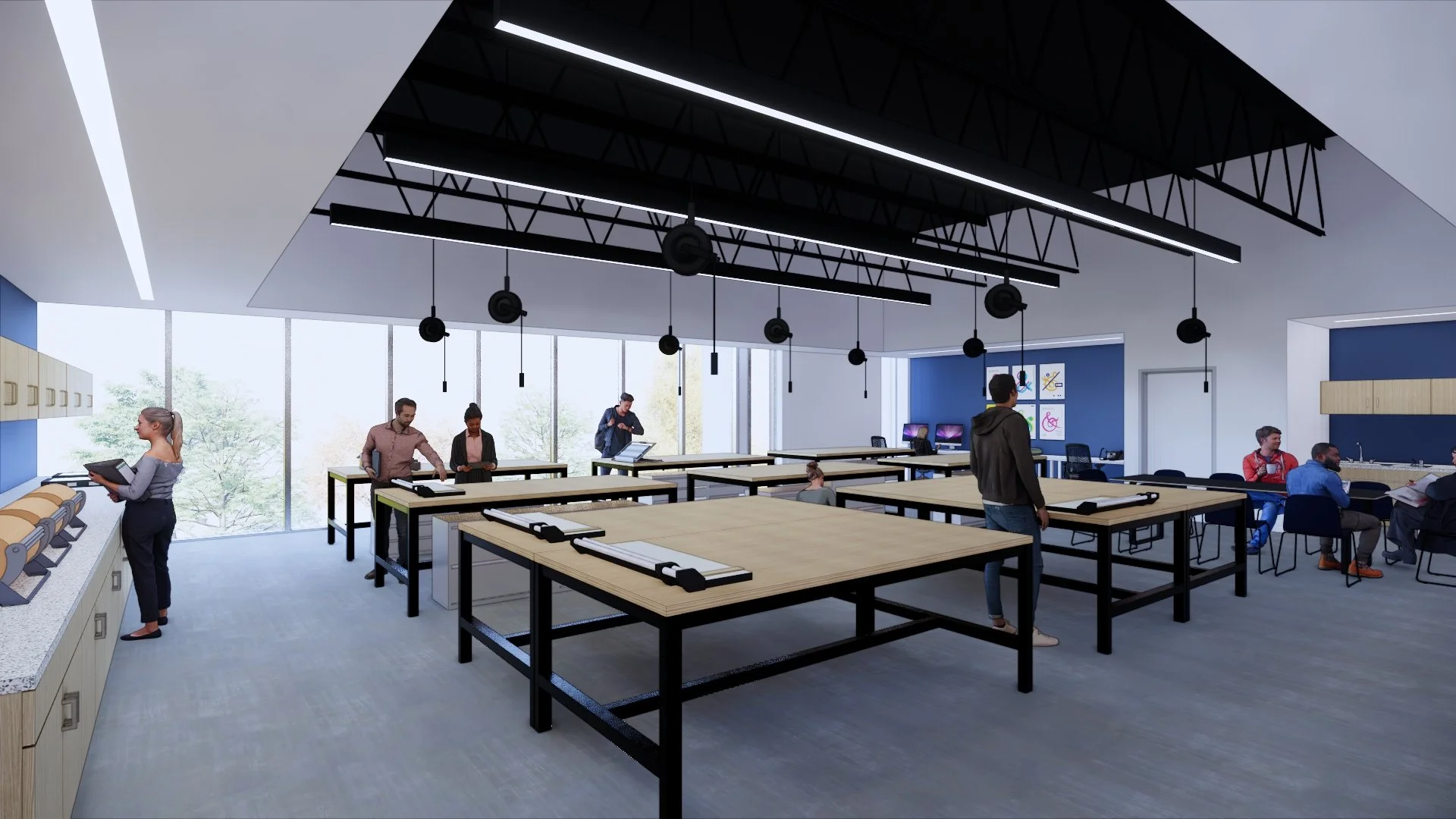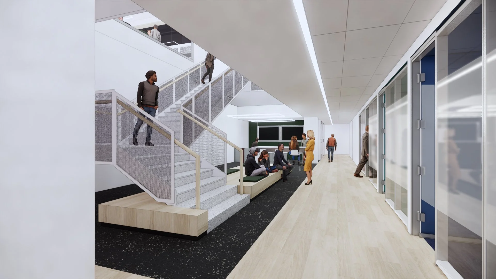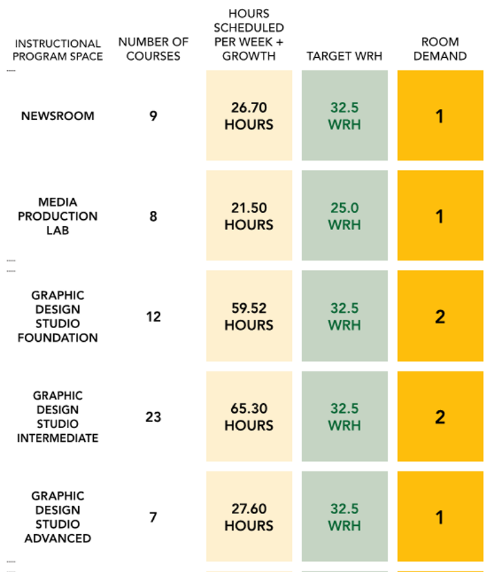 The existing Hewitt Hall on SUNY Oswego’s campus spent many years as a concrete-encased hub for student services before the campus decided to turn the outdated building into a state-of-the-art facility to house the School of Communication & Media Arts. Our team completed a study of the course schedule and lively visioning sessions with the departments to determine appropriate program pieces to fit into this new campus hub. The result is a programmatic organization that leverages shared space, makes the best use of existing architecture, and allows for strategic collaborative openings in the center of the deep floor plate. The technical spaces came into focus through repeated user meetings with all departments, gaining consensus through simple and info-packed graphic representations of the spaces.